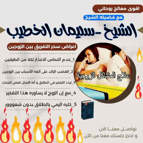 وللطلاق والبغضاء والكراهيه وتفركشه الخطاب والجوزات والانتقام والنزيف والربط الرجال وربط النساء والطاعه والجاه والقبول والعطف وسلب اراده والطاعه وتهييج وعقداللسان وخدوع تام ومحبه جنونيه الحبيب الحل موجود تتجوزي الحبيب جميع الاعمال